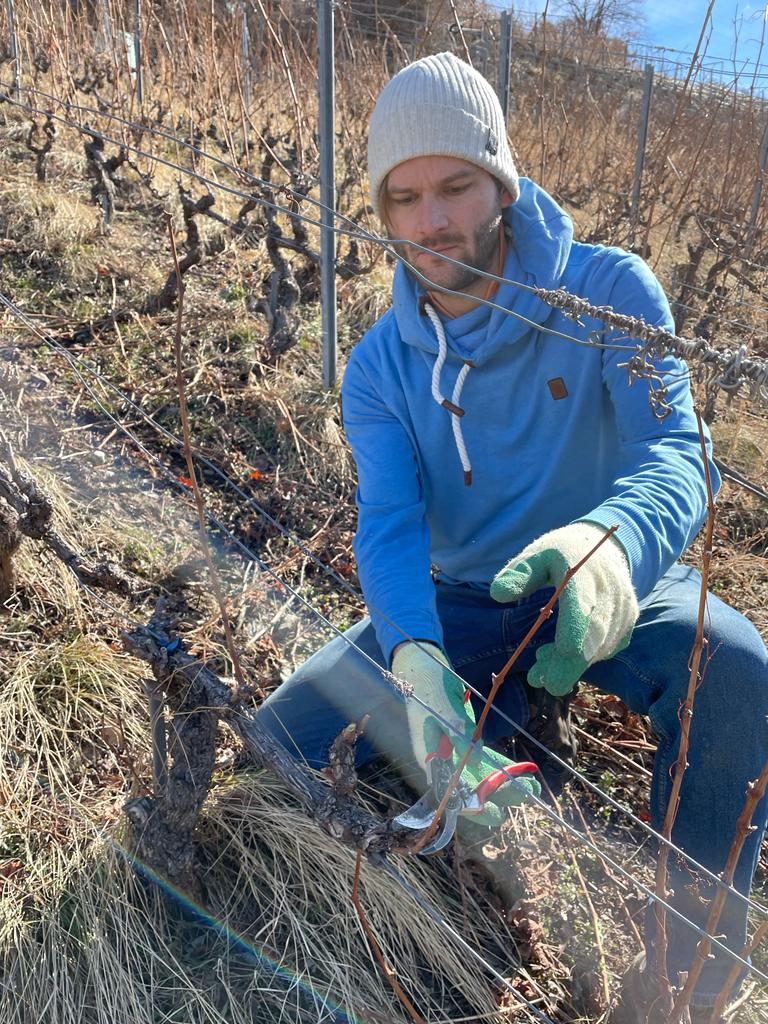 Er hat eine dreijährige Ausbildung zum Weinbautechniker HF im Sommer 2023 abgeschlossen und arbeitet parallel auf einem Weinbaubetrieb.